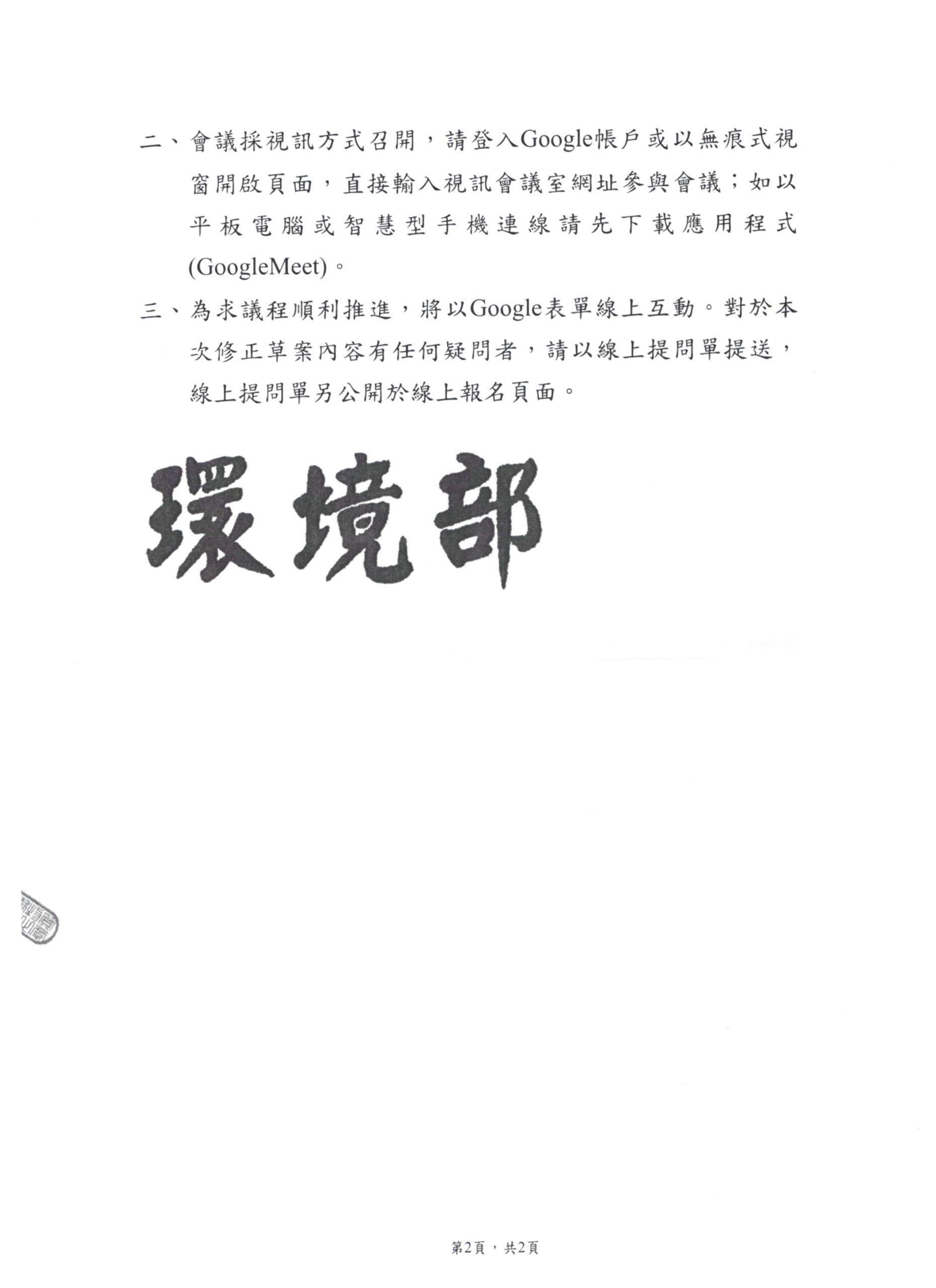 環境部來函,舉行「列管毒性化學物質及其運作管理事項」修正草案研商會議 採用視訊會議舉行,請有意參加者報名參與